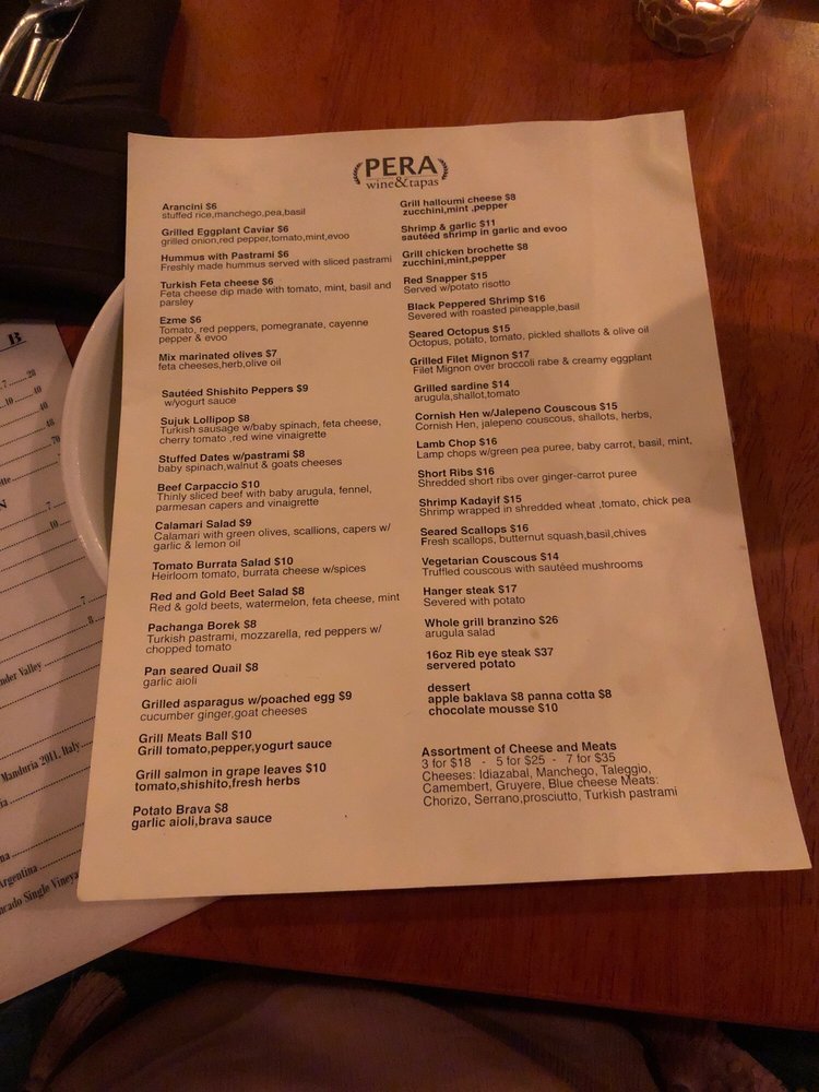 Lightly fried, on a bed of roasted pepper, walnut, and topped with pomegranate molasses.