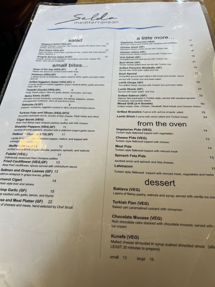 Selda Mediterranean, located in Dallas, TX, is a hidden gem offering a blend of Turkish and Greek flavors. This cozy spot provides a charming atmosphere with live music, perfect for a night out. The menu boasts fresh and flavorful dishes, such as smooth hummus, addictive Ezme dip, juicy kebabs, and the must-try Kunefe dessert. Customers rave about the authentic taste and excellent service, making it a go-to spot for Mediterranean cuisine enthusiasts. With options for vegetarians and a welcoming ambiance, Selda Mediterranean is a delightful dining experience not to be missed. Don't forget to try their famous baklava for the perfect sweet ending to your meal. Visit Selda Mediterranean for a taste of the Mediterranean islands in the heart of Texas.